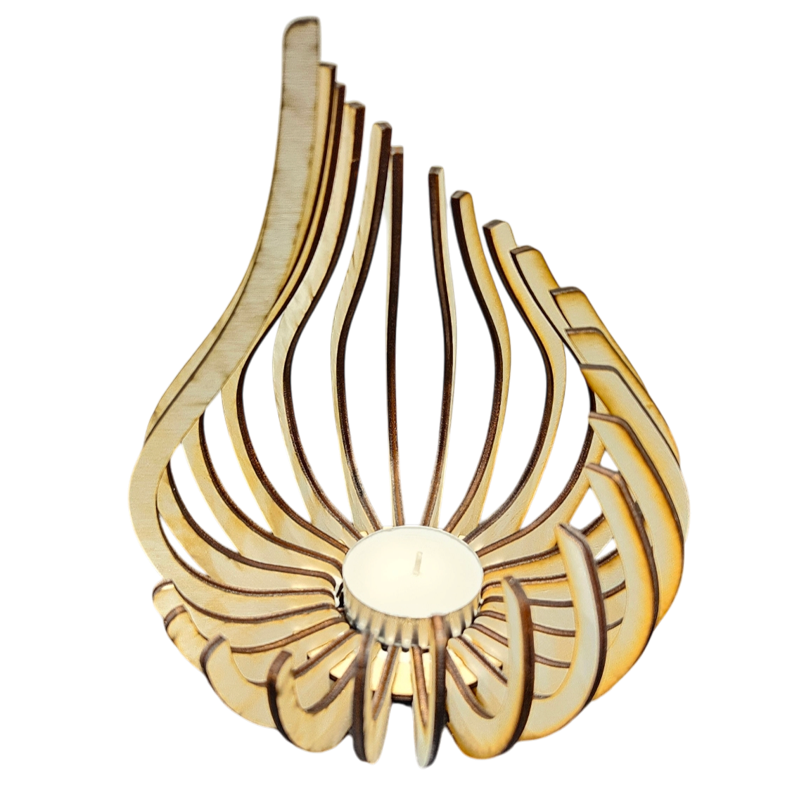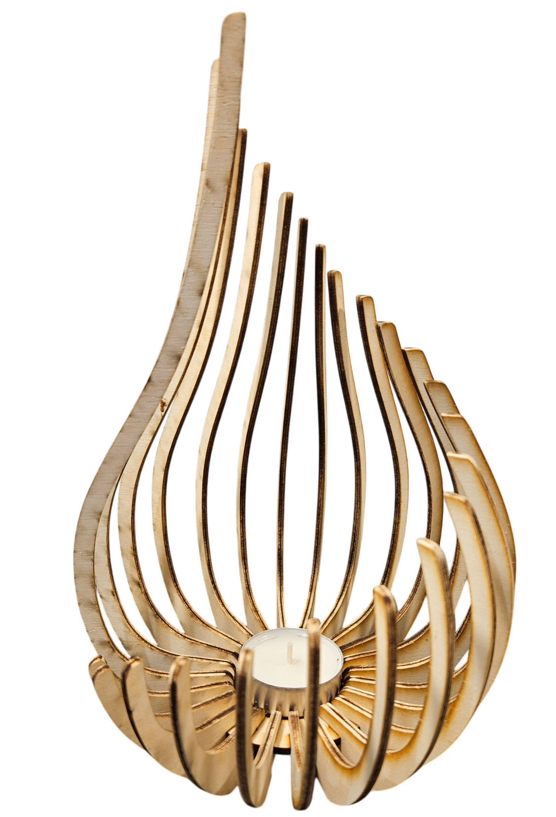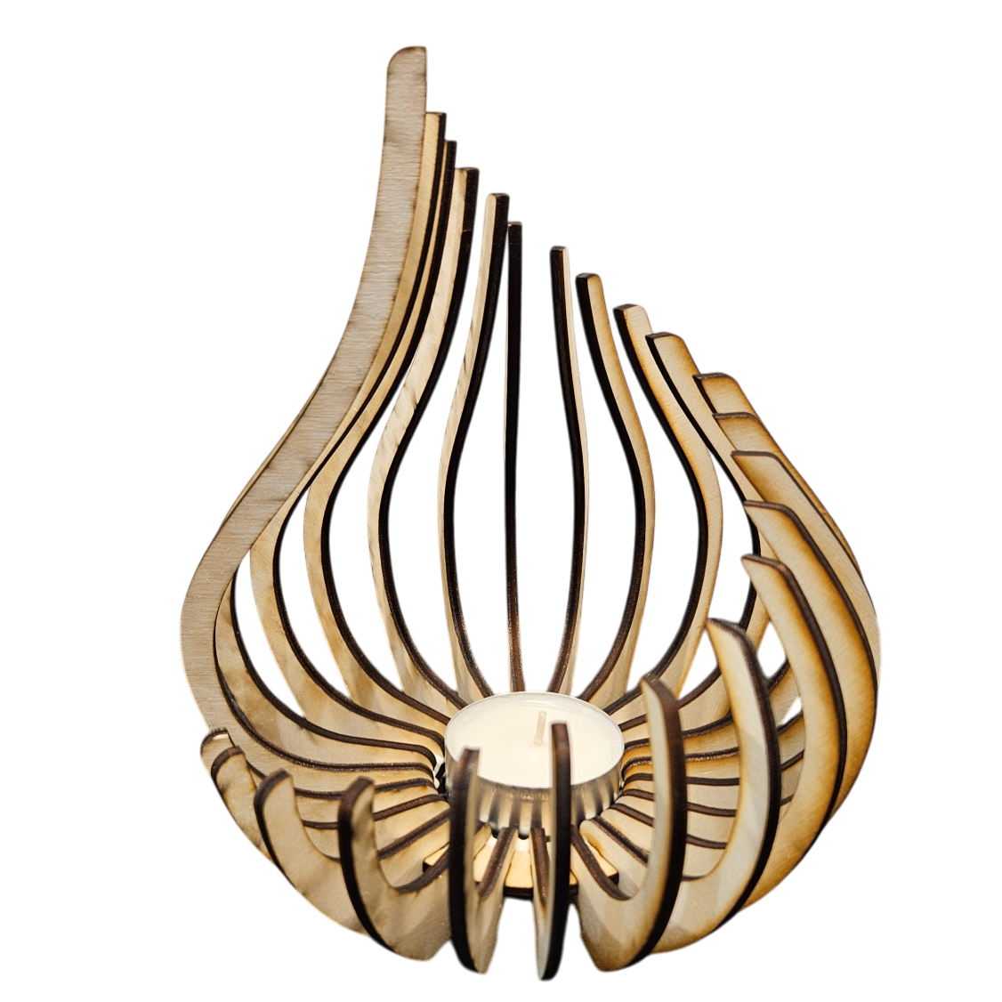 Das Holz Design Windlicht – Tropfen bringt organische Eleganz in Ihr Zuhause. Inspiriert von der Form einer fallenden Wassertropfenflamme, wirkt dieses Windlicht sowohl weich als auch kraftvoll. Die geschwungene Silhouette mit fliessenden Linien verleiht jedem Raum eine natürliche Leichtigkeit – ob als Blickfang im Wohnzimmer oder als sanftes Lichtobjekt auf der Terrasse.