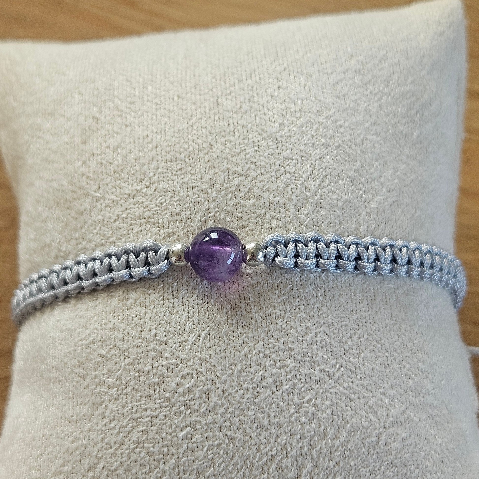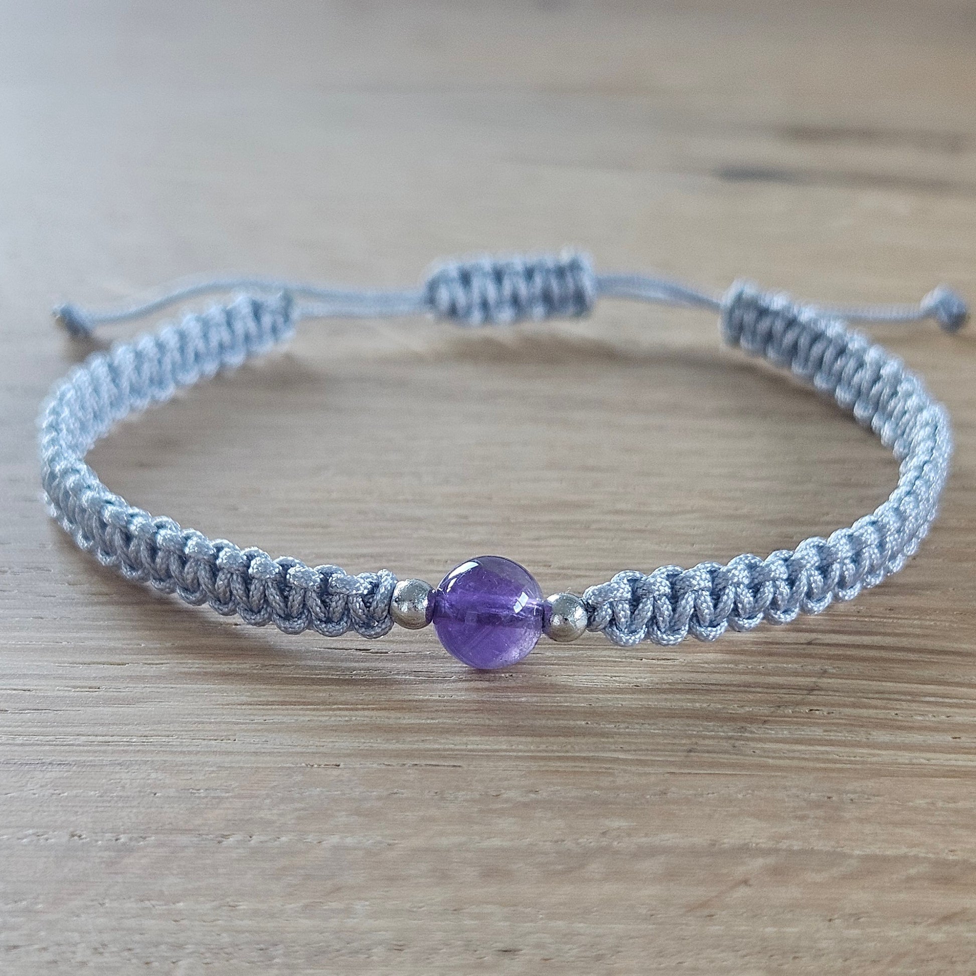Handgeknüpftes Makramee Armband „Line - Amethyst“ – Mit echtem Amethyst-Stein