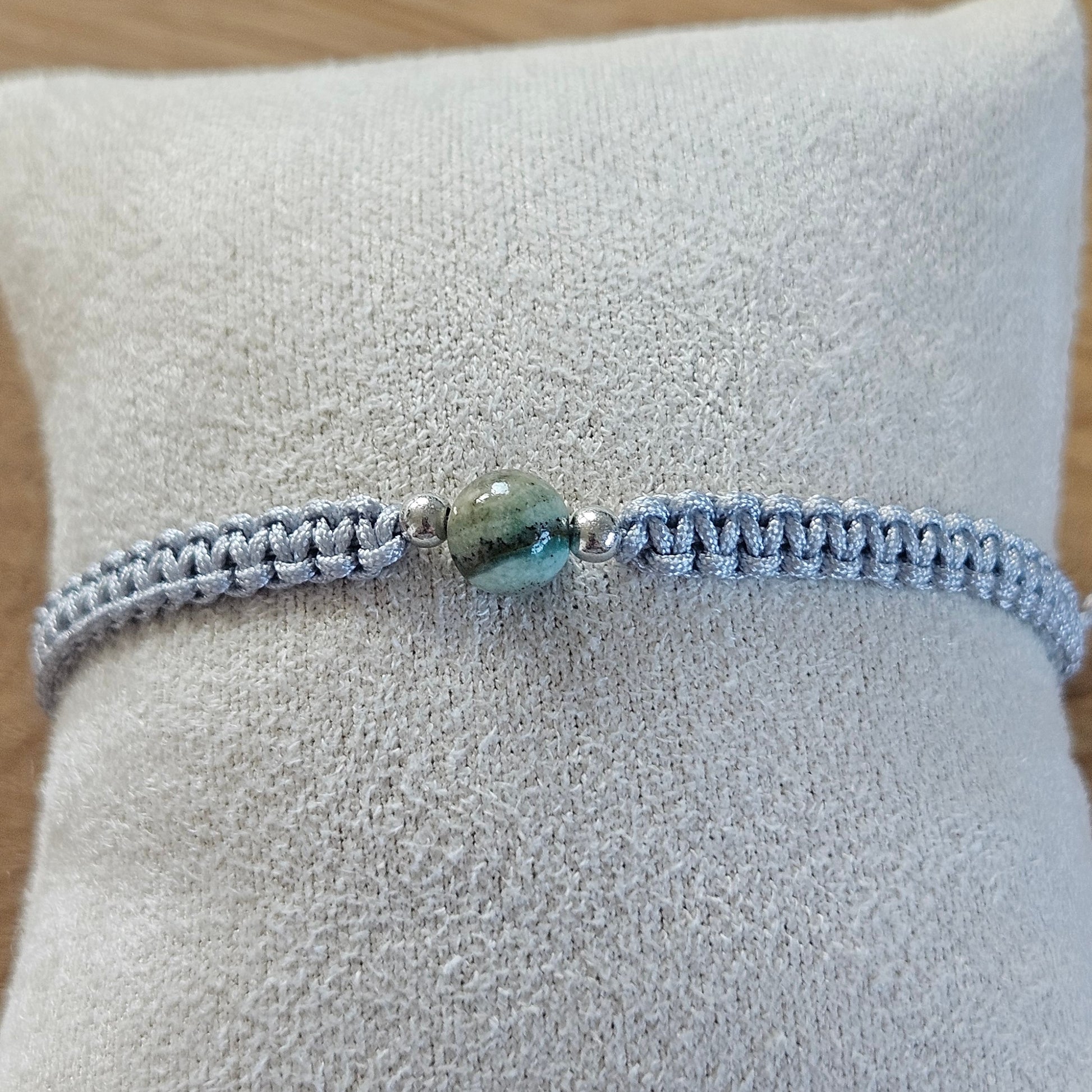 Das handgeknüpftes Makramee Armband „Line“ zeichnet sich durch sein klares, gerades Knüpfmuster und einen eingearbeiteten Naturstein, der dem Schmuckstück eine besondere Bedeutung verleiht aus.