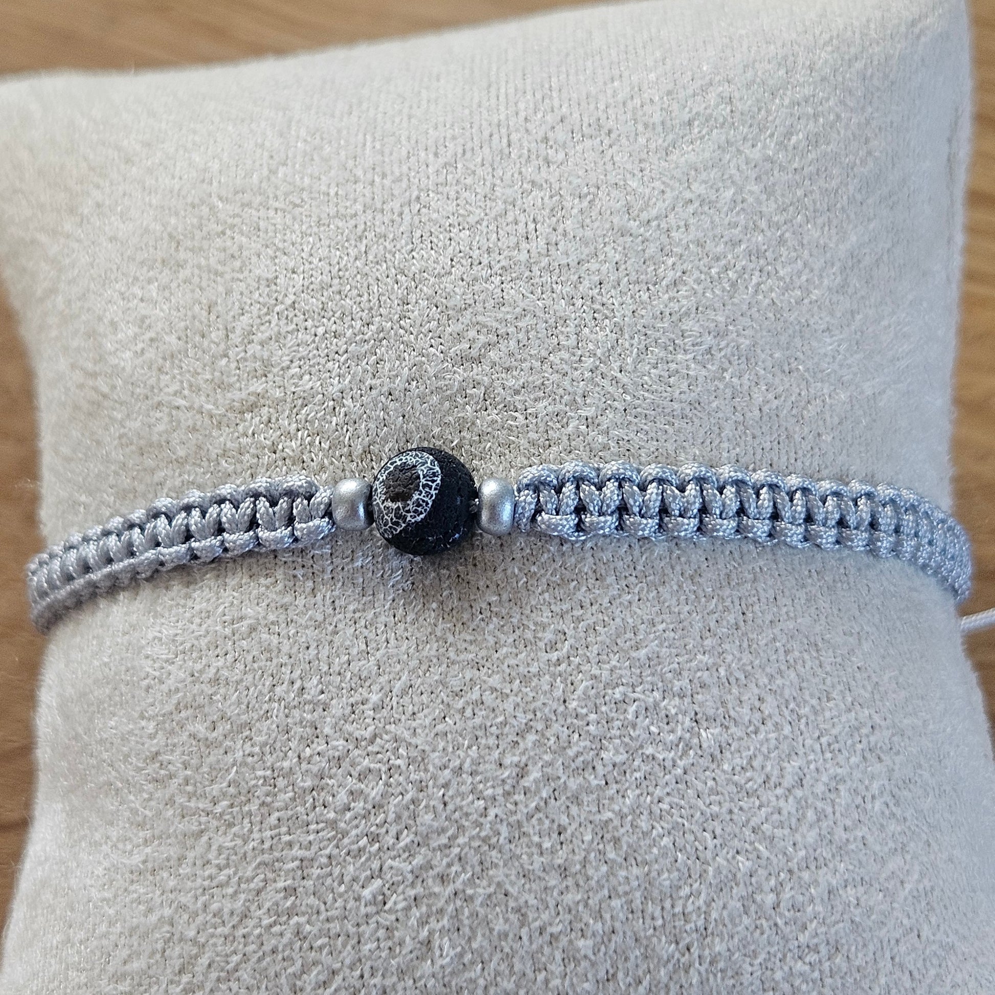 Handgeknüpftes Makramee Armband „Line -Drachenachat schwarz“ – Mit echtem Drachenachat