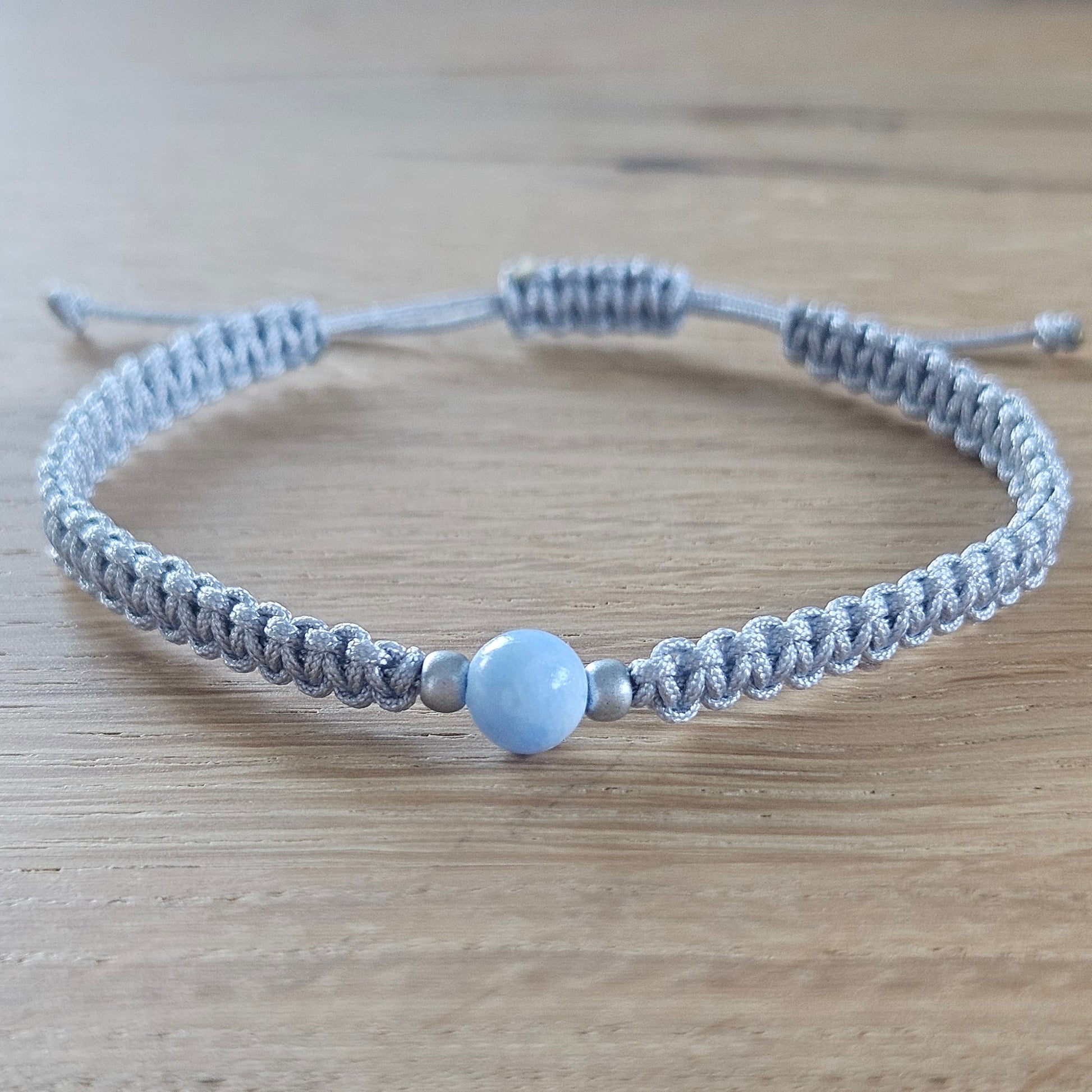 Handgeknüpftes Makramee Armband „Line - Persischer Chalcedon“ – Mit echtem persischen Chalcedon-Stein