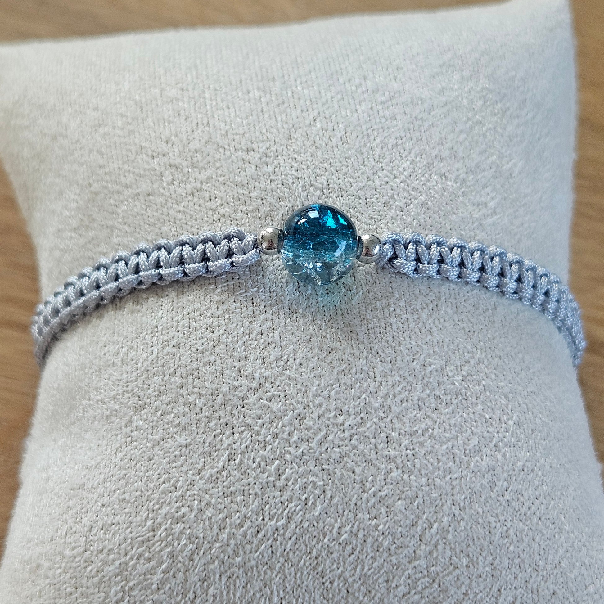 Handgeknüpftes Makramee Armband „Line - Kristallglasperlen blau“ – Mit blauer Kristallglasperle