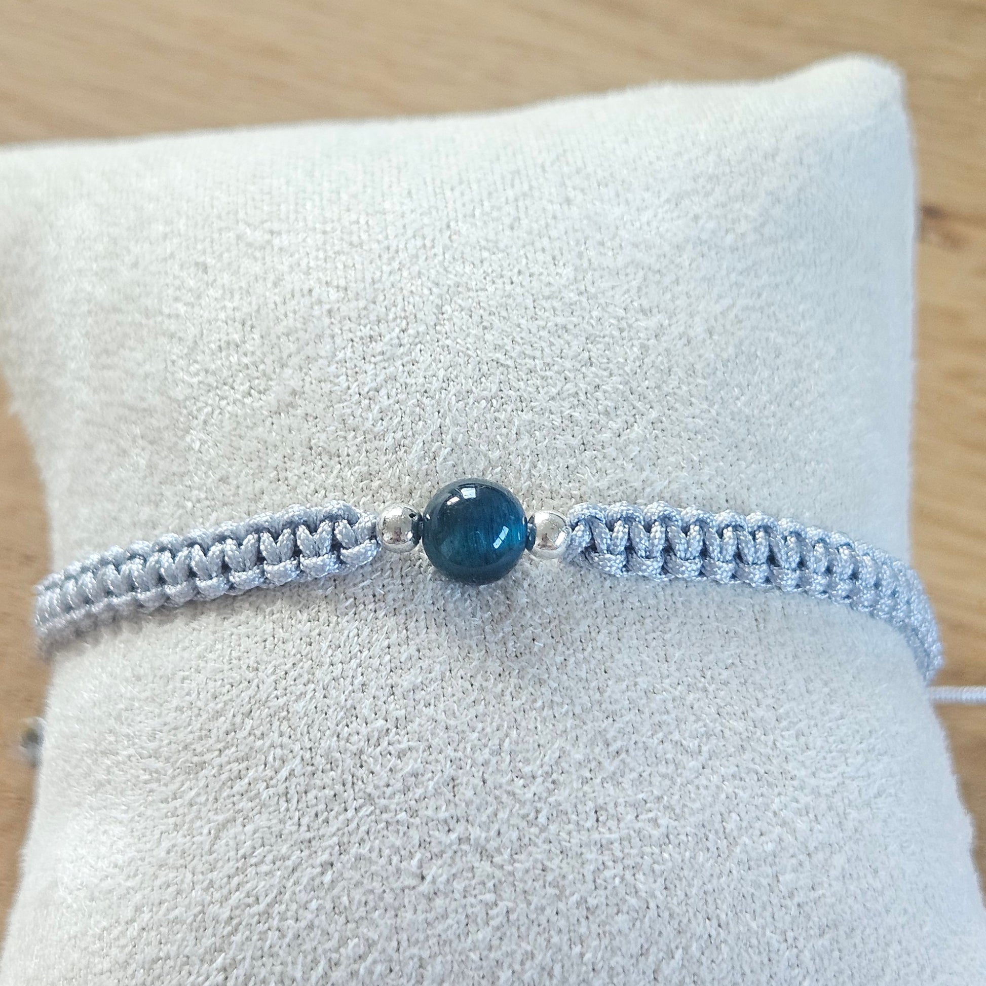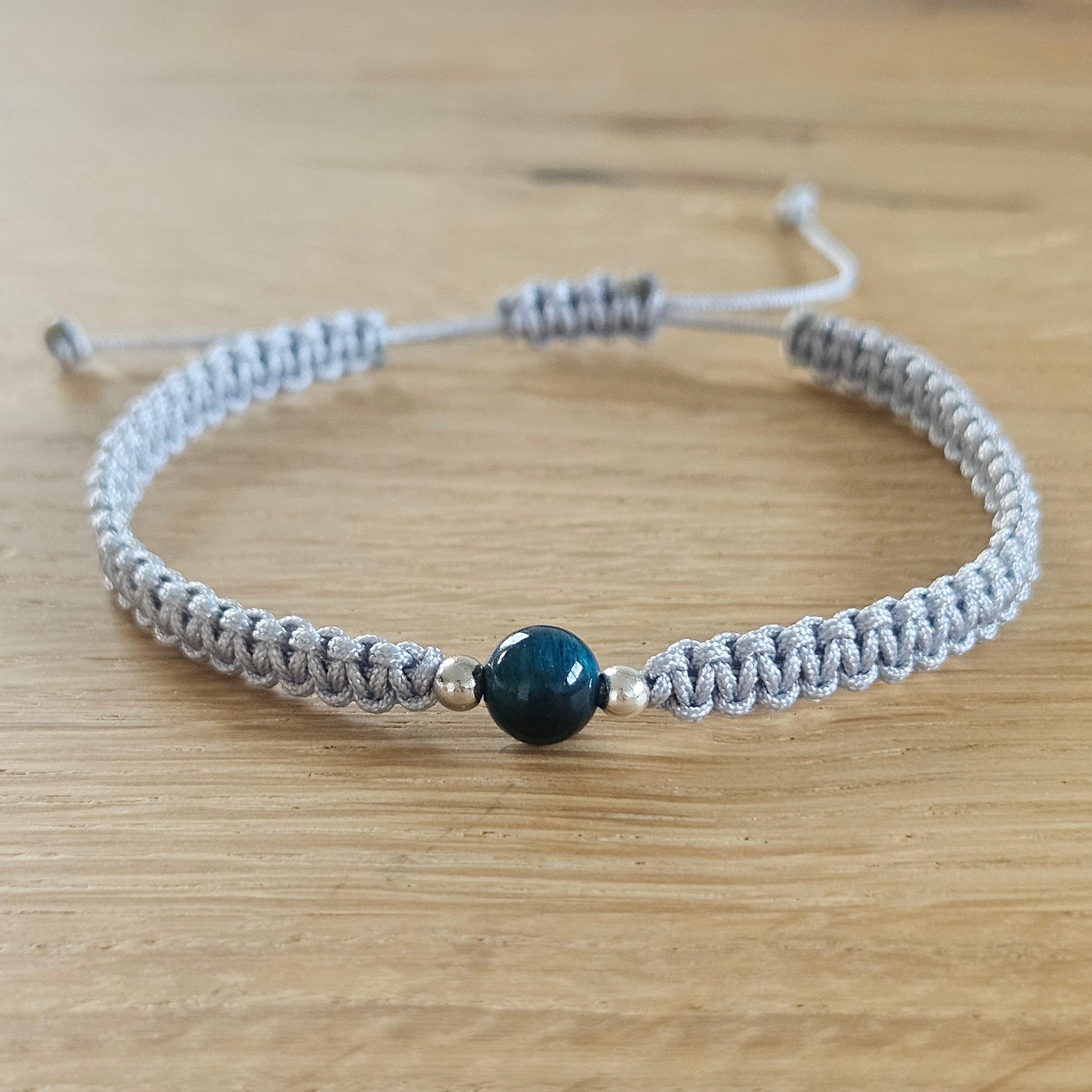 Handgeknüpftes Makramee Armband „Line - Tigerauge blau“ – Mit echtem blauem Tigerauge-Stein