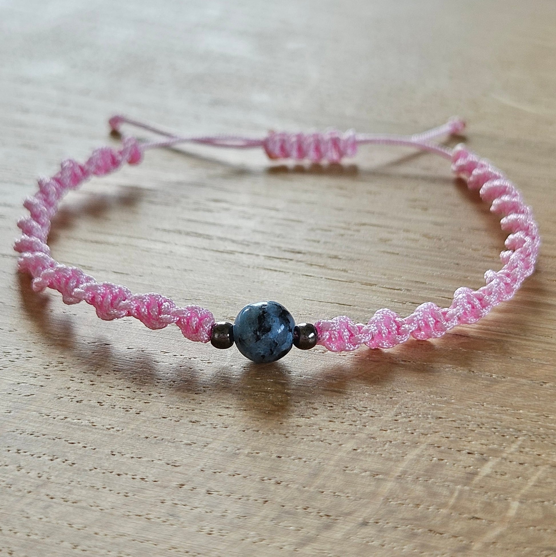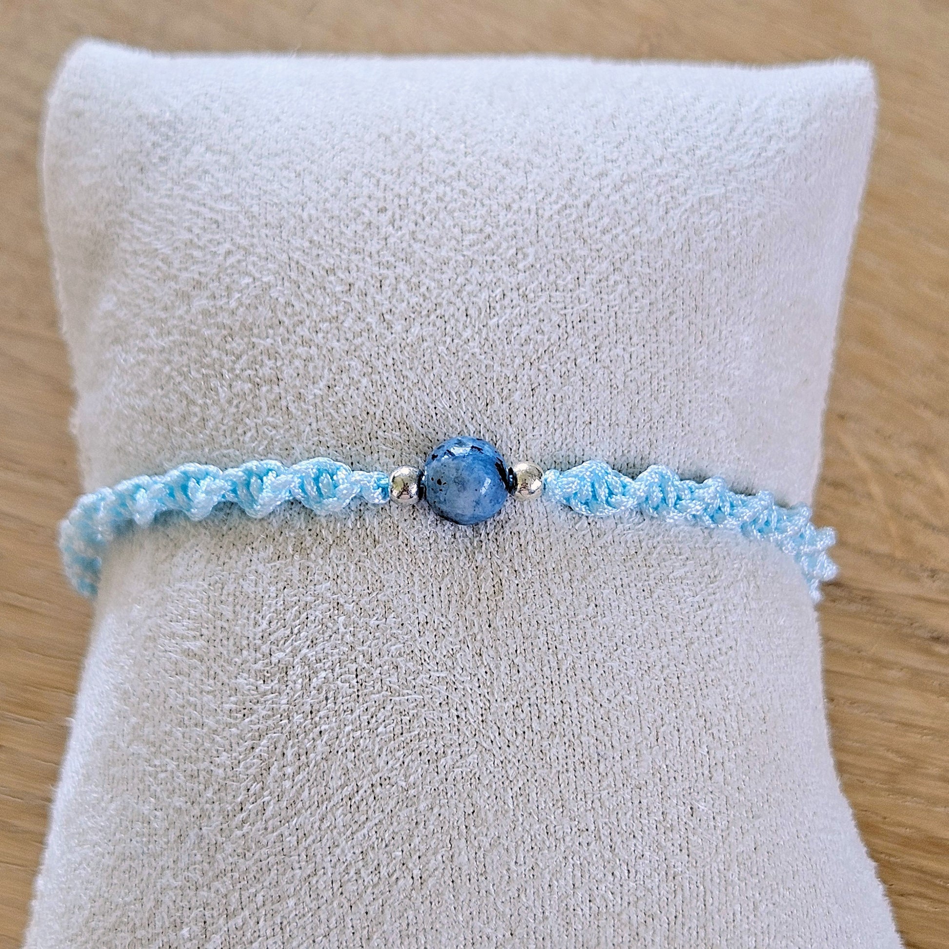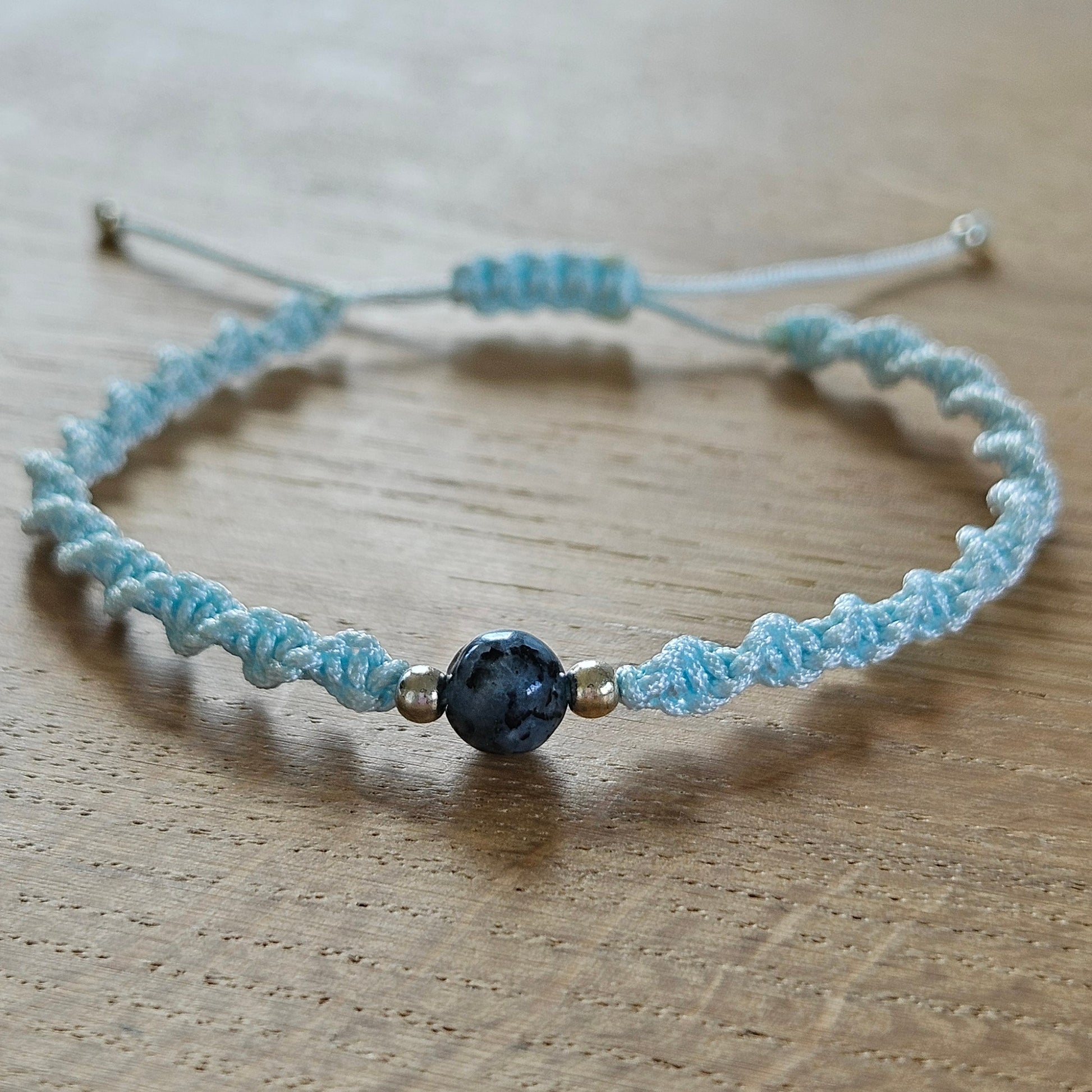 Handgeknüpftes Makramee Armband „Twist - Dalmatiner Jaspis“ – Mit echtem blauen Dalmatiner Jaspis-Stein