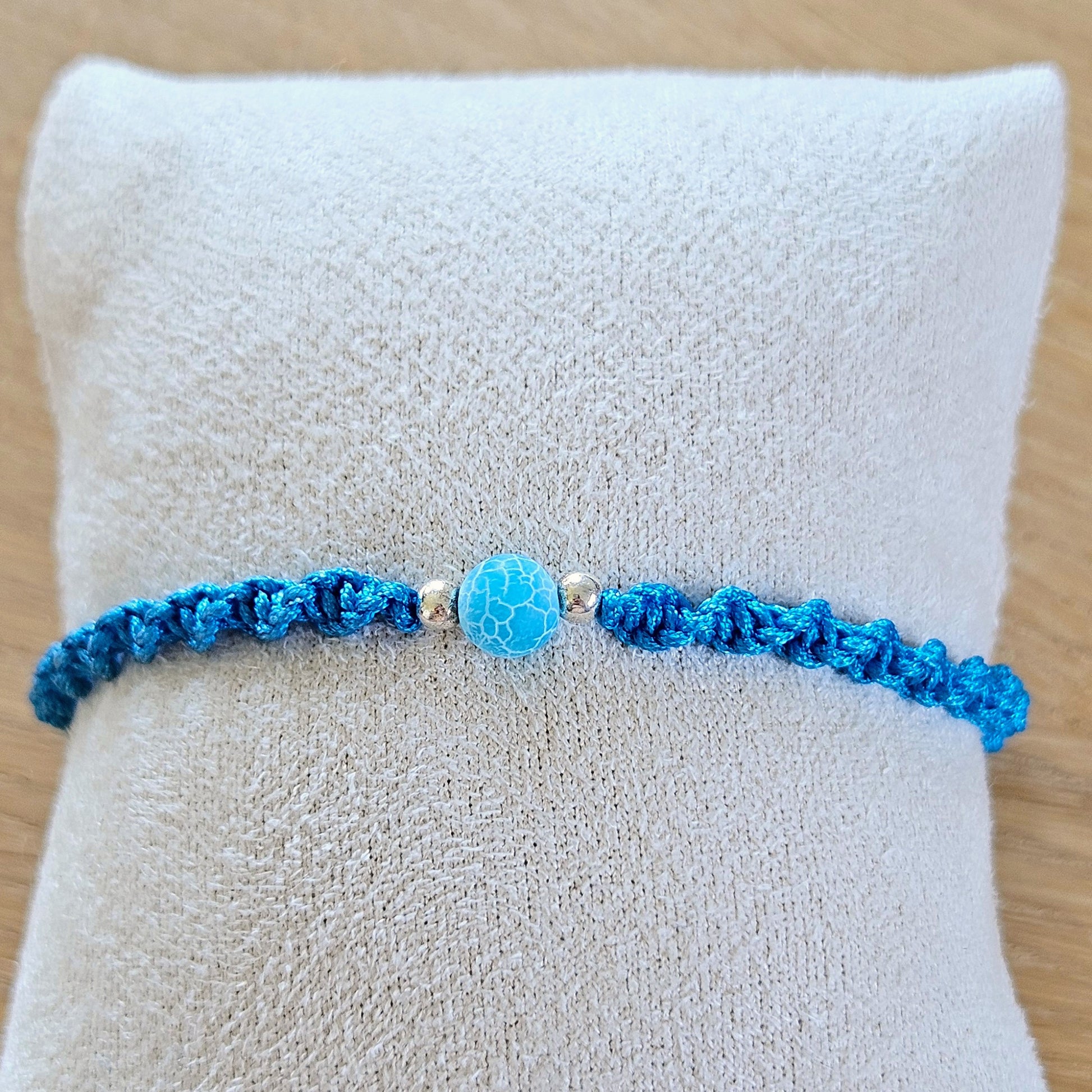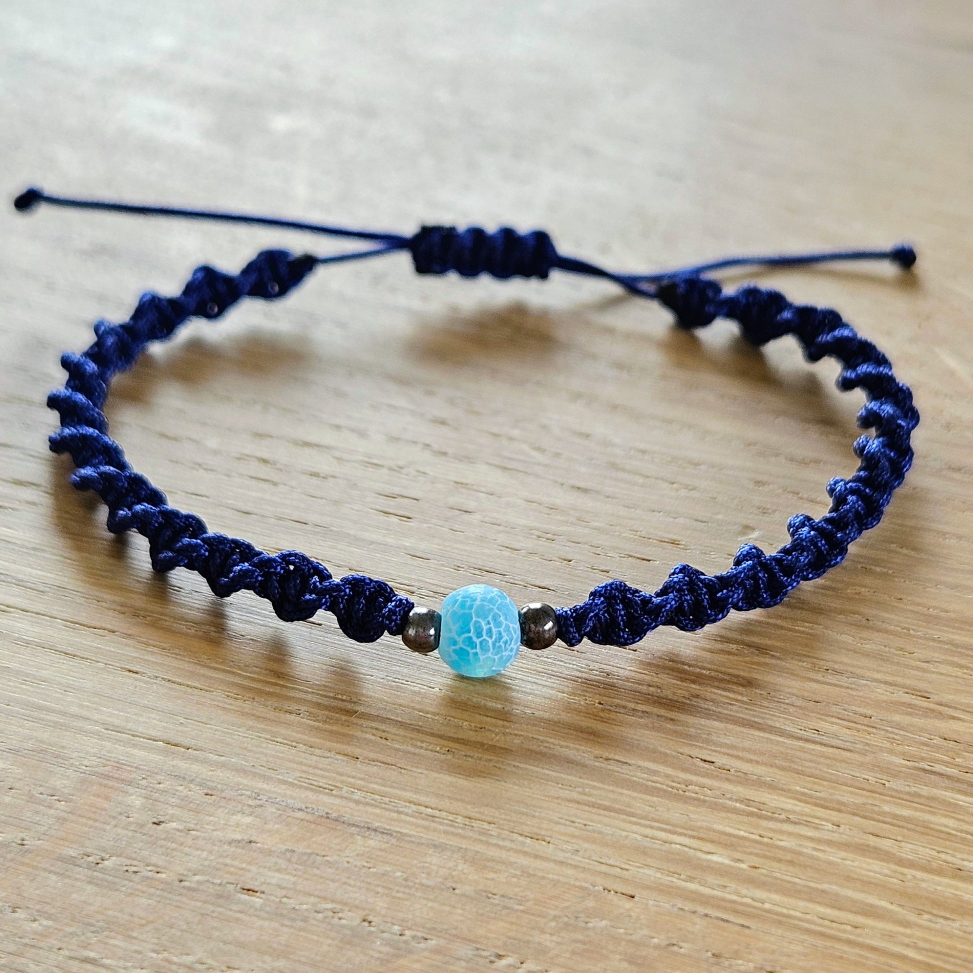 Handgeknüpftes Makramee Armband „Twist - Drachenachat hellblau“ – Mit echtem Drachenachat