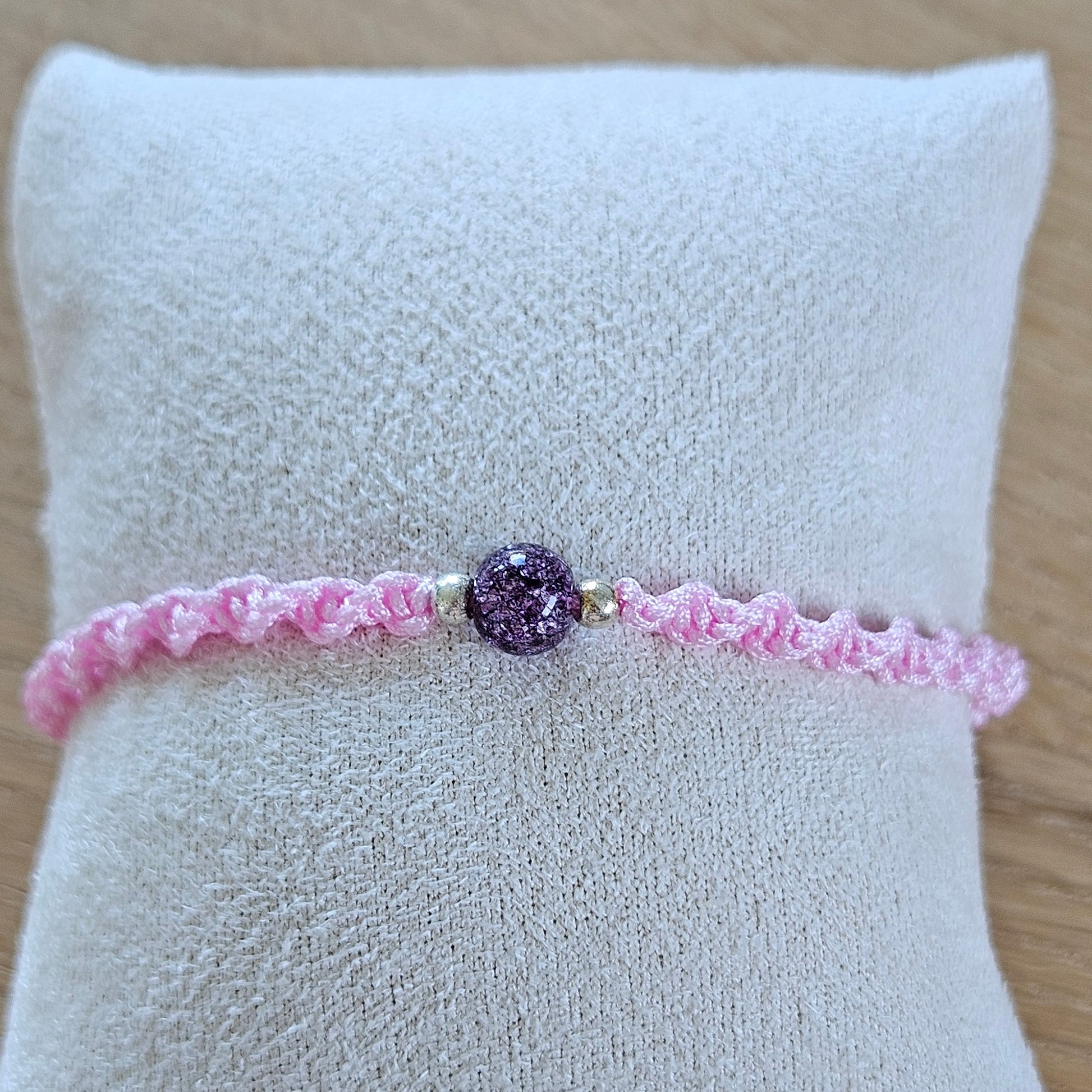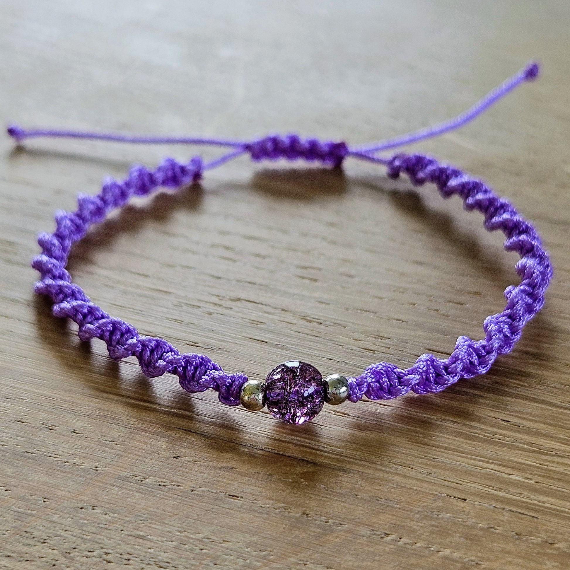Handgeknüpftes Makramee Armband „Twist - rissige Quarzperlen lila“ – Mit rissiger Quarzperlen lila