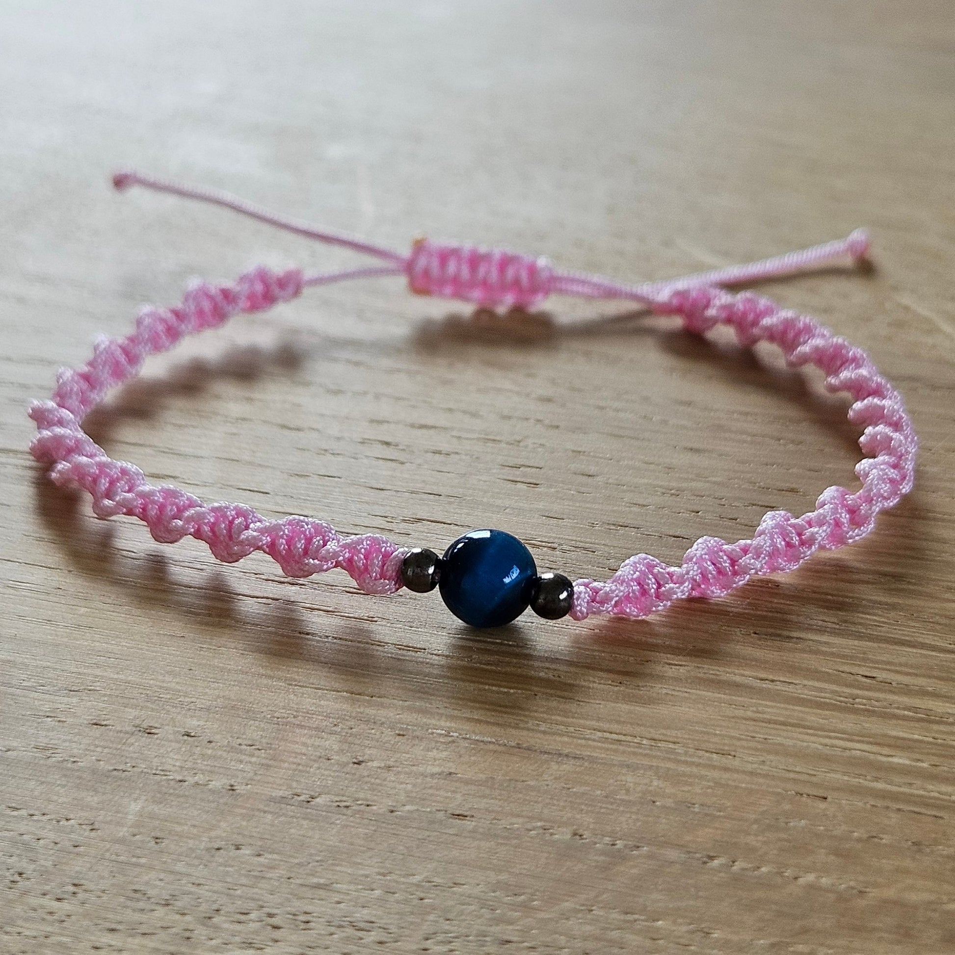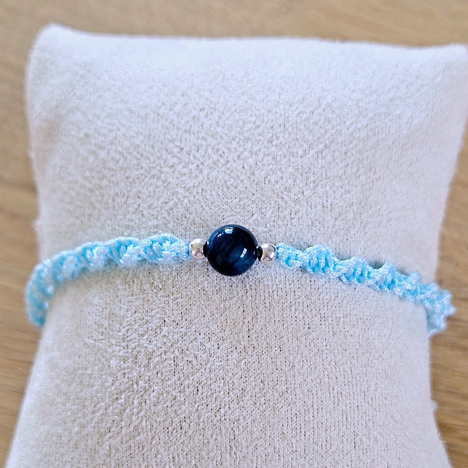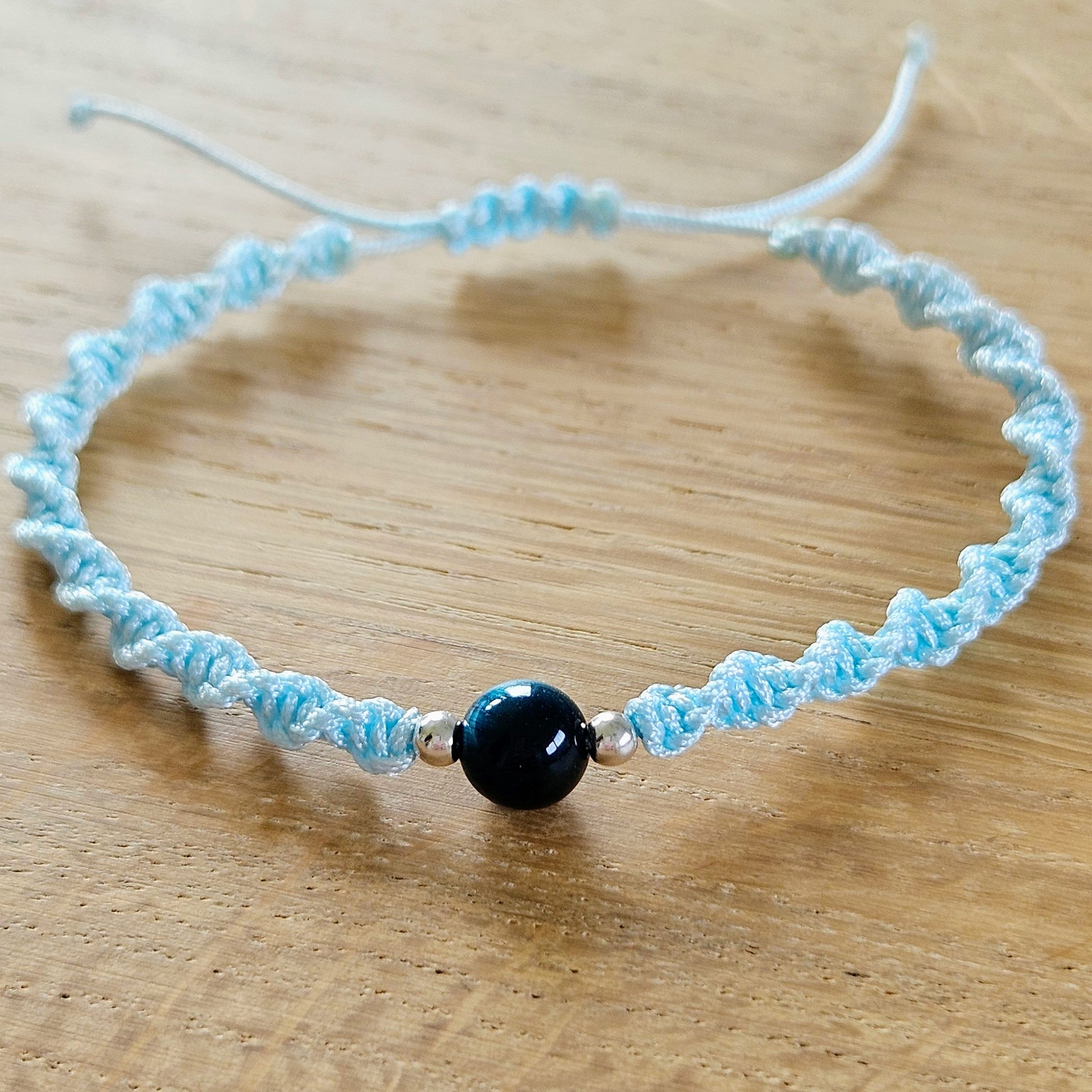 Handgeknüpftes Makramee Armband „Twist - Tigerauge blau“ – Mit echtem blauem Tigerauge-Stein
