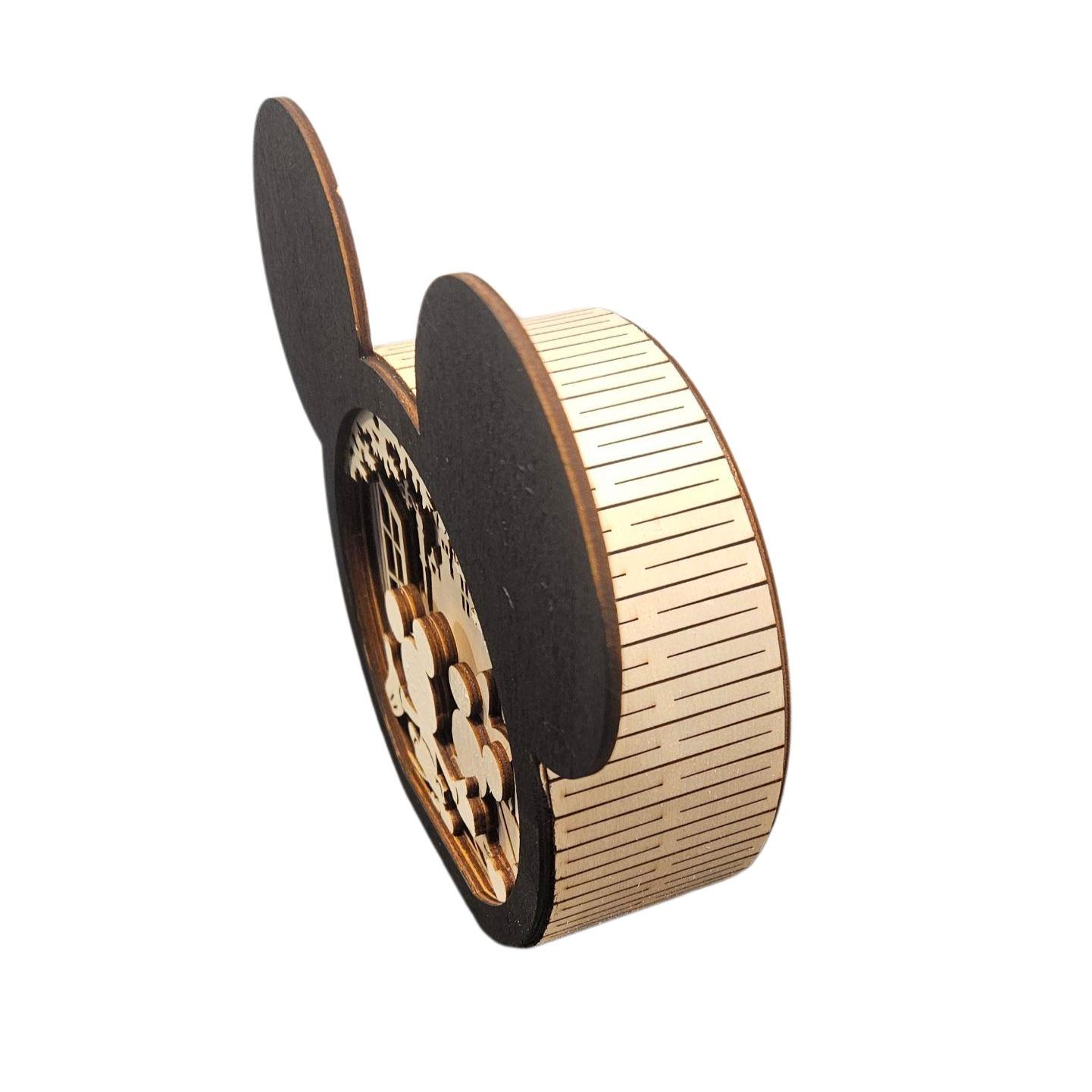 Die Box ist aus hochwertigem Pappelsperrholz gefertigt und zeigt eine detailreiche Szene, die durch das eingebaute LED-Band mit Fernbedienung zum Leben erweckt wird. Sobald das Licht eingeschaltet ist, entsteht ein beeindruckendes Schattenspiel, das Mickey Mouse in warmem, stimmungsvollem Licht erstrahlen lässt.